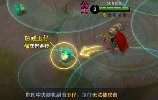 开局1分钟后,地图中央位置会出现随机位置随机大小的多个金币BUFF圈,中圈位置还会在随机位置刷新小怪物“玉仔”