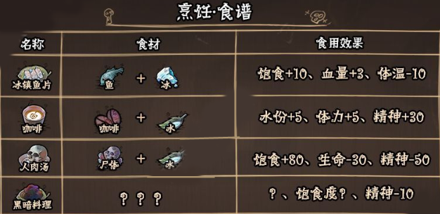 推荐理由:肉汤补水,还加血。但肉的获取比较麻烦吃吃老太给的好了吧,有肉再说。听说寒冰大陆杀一头熊给5块肉哦!打不过?管我毛事😂😂😂好了开玩笑这个还是别作,淘猪窝能搞到就做吧。