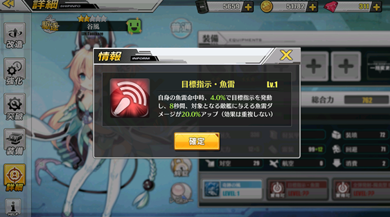 目标指示:鱼雷:自身鱼雷命中时,有7%(10%)的几率发动目标指示,8秒内,成为对象的敌舰所受的鱼雷提高20%(效果不叠加)