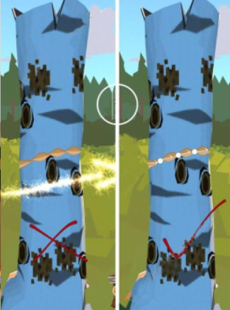 砍树的时候不要像玩切西瓜一样,回来的划,或者一刀划,都不要。