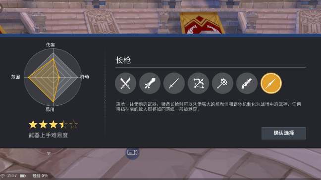 它是目前攻击距离最长的近战武器。擅长组合技攻击,技能以华丽的远距突刺和近身连击为主。在实战中通过手中长枪可以完全支配敌人的意志,使敌人在数招之内缴械投降。