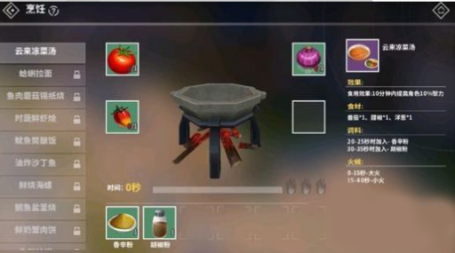 剑之荣耀手游中,有些任务必须要制作食材,玩家有时间可以收集一些食材,然后烹饪。