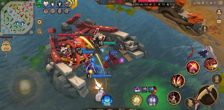 中期打法:中期鬼使黑的用处以及优势就会到达巅峰,击杀敌人的可能性就越高,使用要记得蹲下路和中路,找到机会就使用三技能减速敌人,接着就用一技能将敌方式神打一波伤害,并用二技能把敌方式神拉过来,进行一顿痛A之后,敌方式神若是脆皮,基本就已经残得差不多了,这时候只要一个大招就能轻松收割掉敌方式神。