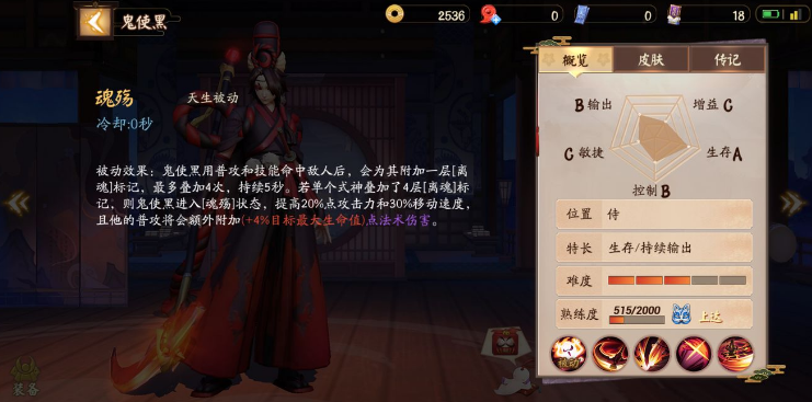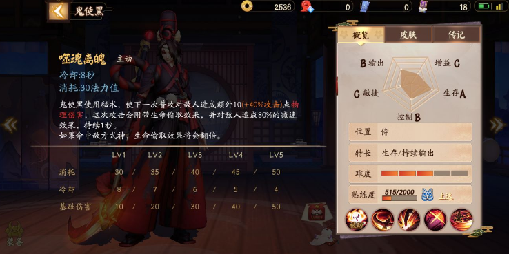 鬼使黑的三技能会吸血并且能提高伤害,这也使他的航续能力变得更加强大。不过要注意的是,鬼使黑使用噬魂离魄技能很容易A到兵,基本上都是使用三技能就会A到离鬼使黑最近的小兵,因此要攻击敌方式神时就要注意先把攻击目标选为式神,并靠近他,不然依旧要A到兵的。