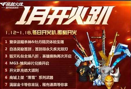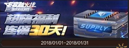 即日起至1月31日,累计充值200钻可获得一个火线补给箱(30天),每日登录后会通过邮箱向玩家发送25钻奖励。