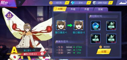 再从技能上来看,当把笛口雏实培养起来后,攻击、血量、防御有提升,最关键的一点是七星时笛口雏实会解锁技能冷却时间,这无疑大大提升了笛口雏实在加血上的能力。除此之外当把笛口雏实的专属武器觉醒后,还能解锁群体回复效果!毫无疑问这是个前中后期都非常有用的角色,非常值得培养,强力推荐!
