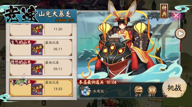 阴阳师山兔大暴走需要很高的练度和耐心,打不过的话放弃也是很好的选择。