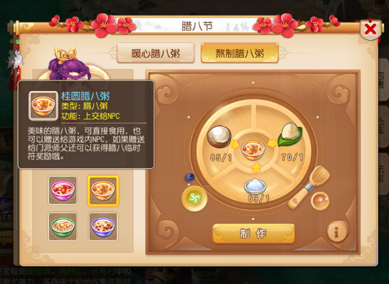 2、1月27日后,腊八粥只可自己食用,将不可赠送给NPC。