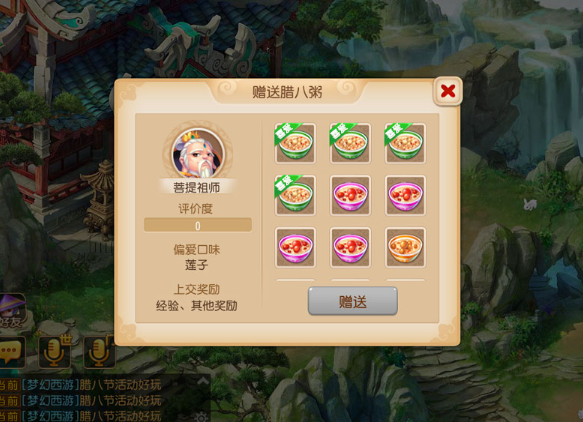 1、将腊八粥赠送给NPC后,可以提升评价度;