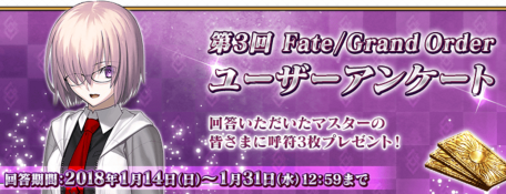 第三回FGO用户问卷调查开始!(问卷地址:FGO日服呼符调查问卷)