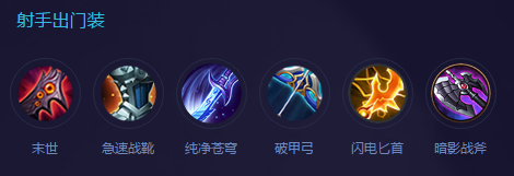 推荐思路:纯净苍穹可以避免阿离被控制秒杀,同时急速战靴可以增加阿离站桩输出的能力,常规射手神装,后期可以打出爆炸输出