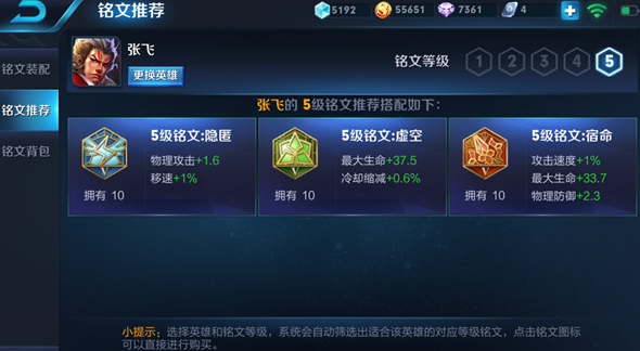 这套铭文使得张飞前期就有更多生命值,冷却缩减可以让张飞更快积攒大招,配合上一定的物理攻击和攻击速度,开大后的张飞对敌方刺客型、法师型、射手型英雄伤害爆表。因为张飞大招有着巨额护盾,所以我们在铭文选择上不要一味堆加生命值,适当增加物理伤害以及攻击速度会使前期张飞更容易击杀敌方英雄,建立对局优势。