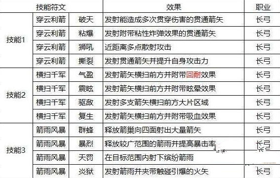 上图则是长弓所有技能符文的效果,玩家可以根据自己想要的技能效果进行选择;