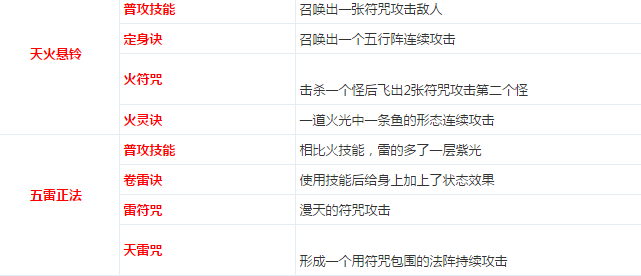 阴阳家可将手中的不同属性的符咒变为或催生出引天之雷,不灭之火,无形之水。