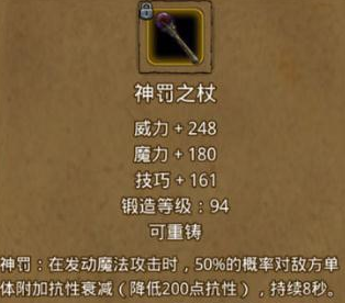 神罚:在发动魔法攻击时,50%概率对敌方单体附加抗性衰减(降低200点抗性),持续8秒。