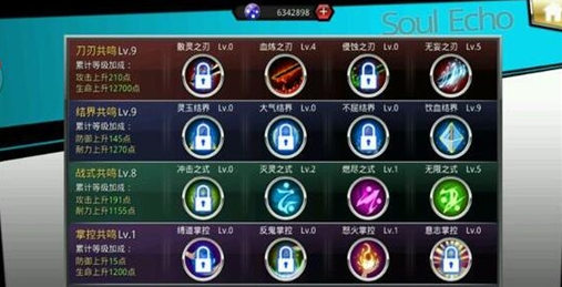 灵魂共鸣四大系分为:刀刃共鸣、结界共鸣、战式共鸣、掌控共鸣。以上共鸣均有等级上限,等级越高相应加成越明显,主要提供攻击/生命、防御/耐力、攻击/耐力、防御/生命等属性,45级便可开启。除此之外,细分的十六个加成属性更具亮点。