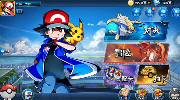 《口袋对决》中初始可选的三个角色分别是小智、小茂、小霞,选择不同的角色,将会得到不同的初始角色卡组。