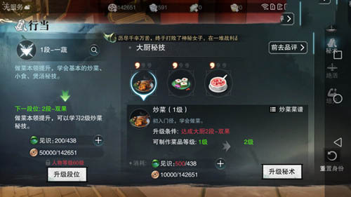 没错,这个东西超好做出来的东西,想做东西先在这个面板升级,如果你没见识一开始点不了?别担心,去做一下日常活动、其他行当的任务,就会获得见识赢取白富美 啊呸...做好吃