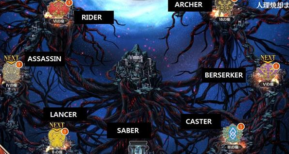 为了方便说明,魔神柱对应职介从左至右分别是Rider(骑阶)、Assassin(刺客)、Lancer(枪兵)、Saber(剑阶)、Caster(魔术师)、Berserker(狂战士)、Archer(弓手)