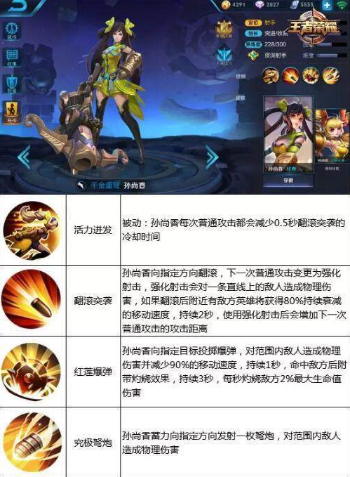 凭借1技能的位移和自身走位,大小姐能为自己创造出非常好的输出环境哦!而且大小姐推塔速度非常快,虽然会在团战中被敌方觊觎,但是有1技能在手,大小姐我怼天怼地怕什么吼。喜欢玩射手的召唤师来秀一波吧~