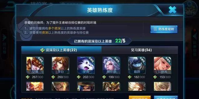 排位规则调整:绿色(2级)熟练度以下英雄不能参与排位赛。