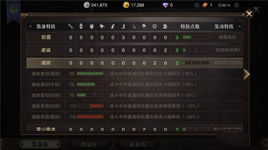 让后就是有装备套装具有魂链加成效果,就是拥有魂锁特技的装备。如图套装,就能让魂链收集速度加快。