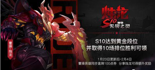 赛季奖励皮肤烛龙的获取条件还是和以前一样:段位达到黄金,且排位赛取得10场胜利,方可获得。同时,曹操点券直售的价格也将会降低100点券。