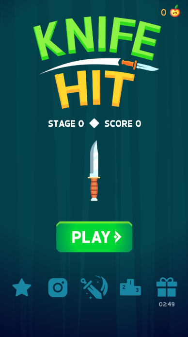 knife hit游戏是一款飞刀小游戏,在当前国内可谓是非常的火,该游戏的玩法也十分的简单,只需要关注游戏界面上方的转盘,然后你点击屏幕、掷出飞刀就行了,该趣味性强,而且也不费脑,适合大家休闲玩玩。