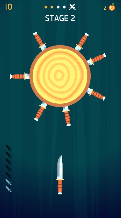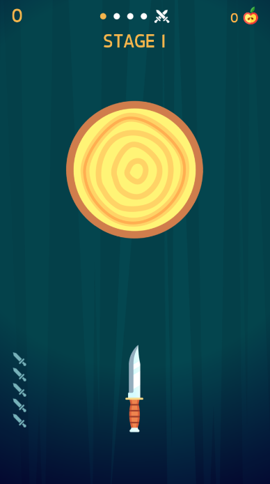 然后开始掷飞刀,第一关比较简单,五把飞刀丢好就可以通关