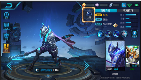 在英雄的展示界面中,为了让召唤师们能够更加清晰的了解该英雄在游戏对局中的定位及团战位置,我们新增了所有英雄的分路位置的介绍,如下图所示;