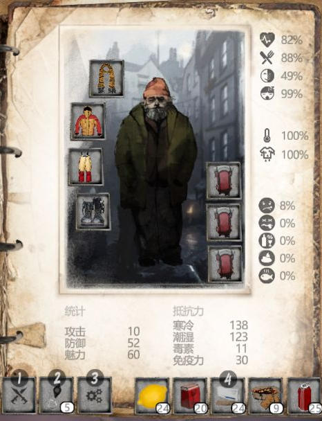 1、学习垃圾搜寻技能的熊人NPC,是一个值得增加好感度的npc;即可以通过对话提高搜垃圾的经验值,还可以在对话中触发商店,熊人的商店物品是随机的,有可能会出现猫和死鸟这两个平时需要翻垃圾问号才能获取的物品(貌似卖400一个);用死鸟做菜可以加一点抗潮湿,用猫,做菜可以加一点抗寒。这个对于那些没有刷出高抗寒衣服的同学非常有用(我一个朋友都活了50多天了还没用刷出高抗寒衣服,人品堪忧)。食品可以连续吃来加属性,但请注意一份食物加40大便,狂吃前请准备好除臭用品