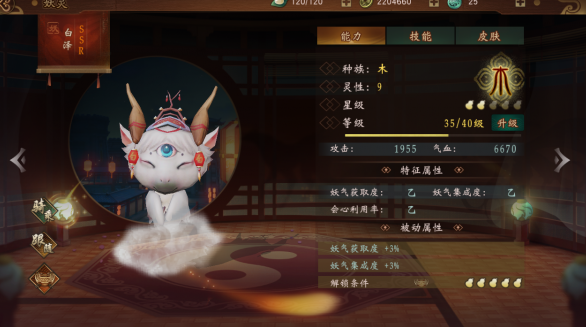 白泽:被动增加妖气获取速度,同时技能特效群体加25%妖气;