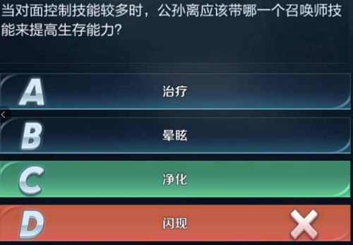 当对面控制技能较多时公孙离应该带哪一个召唤师技能来提高生存能力?这是王者荣耀王者知道第三期中的一题,很多玩家不知道正确答案是什么,一起来看看。