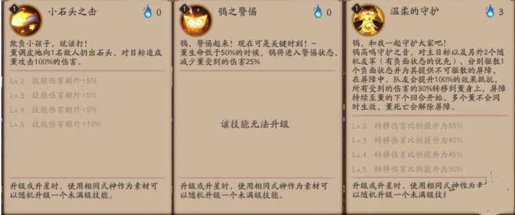 技能图鉴:作为辅助式神,给队友提供效果抵抗的屏障,持续至她的下个回合开始。