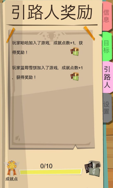每个玩家可在旅途中拍摄照片,制作明信片分享,每张分享给好友的明信片都会带有您的专属邀请码,好友进入《边境之旅》,并使用邀请码之后,您和他/她都会获得奖励,且您成为他/她的引路人,之后他/她每在新大陆取得一定的成就,您会相应的获得钞票奖励及引路人成就点数。累积引路人成就点数,即可获得丰厚奖励。