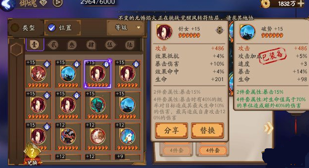 2.若干次成长之后,御魂上显示的数值会四舍五入到百分号的整数位。若干御魂带在同一式神身上,面板上最终显示的数值会取所有御魂数值相加后,四舍五入到百分号的整数位。