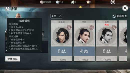 劫狱要击杀npc,击杀npc就会增加罪恶值,而罪恶值过高的玩家,就会遭遇入狱和追杀等等情况。