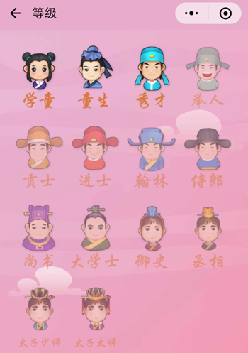 秀才成语答案大全是一款最新的微信成语游戏答案攻略,微信猜成语游戏有众多等级,从最初的学童,那童生、秀才、举人、贡士、进士、翰林、侍郎、尚书、大学士、御史、丞相、太子少师、太子太师十四级组成,等级越高问题难度越大。