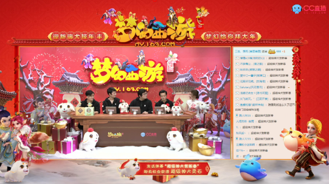 随着主持人开场白的响起,《梦幻西游》手游拜年直播正式开启。在本次直播中,《梦幻西游》手游制作人陈俊雄与开发组核心成员齐齐登场亮相,制作人陈俊雄、执行主策划赵宏伟、主美黄剑、程序经理唐文良逐一为玩家送上新年祝福,感谢玩家在过去一年里对《梦幻西游》手游的支持与热爱,并表示新的一年里,将继续优化产品品质,让玩家获得更好的游戏体验与乐趣!