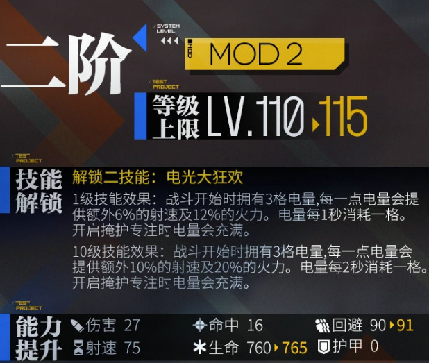 升级至MODⅡ:解锁被动技能,等级上限提升至115。