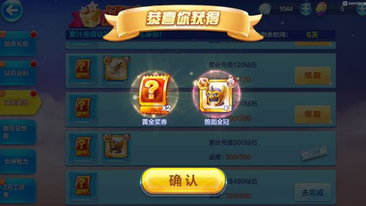 累计充值满300钻石,可获得黄金奖券*4+吕布专属S级宝物--兽面金冠;