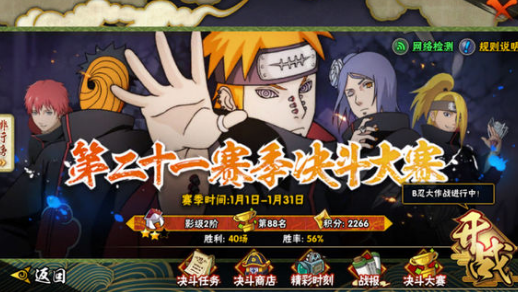 活动内容:上架二月限定招募忍者佩恩【**道】和漩涡鸣人【新春限定】,玩家可以随时在两个忍者间切换,招募自己喜欢的忍者。