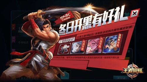 可产出内测皮肤(蔷薇恋人和优雅恋人),不过可能不是永久,或抽中概率极低,不过得到SNK专属碎片的概率是很大的!40个碎片可兑换SNK英雄或皮肤。所以大家也可抢好友分享的冬日好礼,增加机会。毕竟每天都5次的机会!