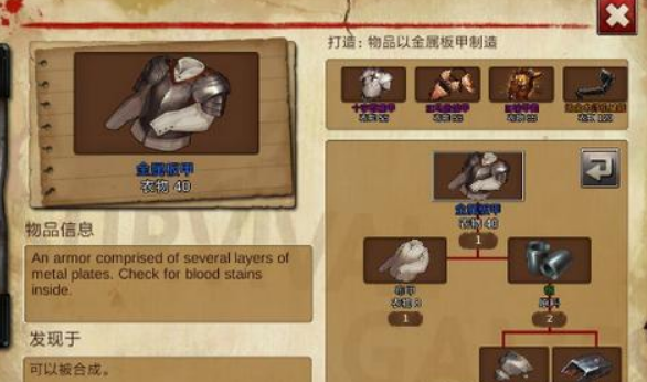 一皮革,一布甲,我们需要去工厂寻找一个废铁再去山道寻找铁矿石合成一次钢铁(合成一次是会获得两块钢铁的)