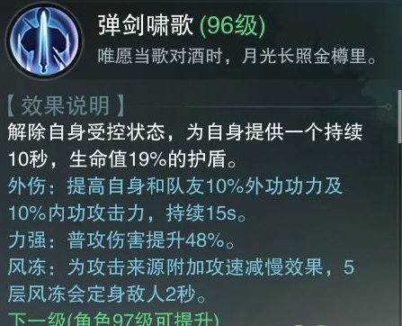 华山的核心技能,打本能提升队友攻击。pk能解控能上盾,PK的时候慎用;