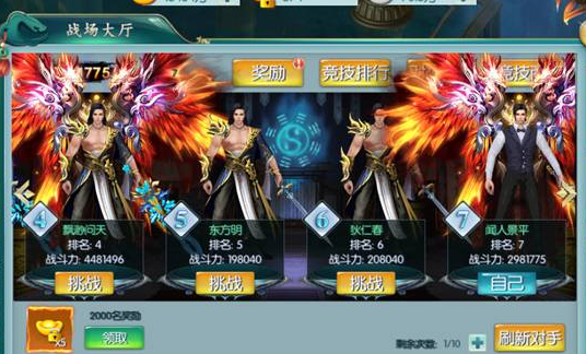 战场大厅全天24小时向玩家开放,只要你有挑战次数都能参加,每天上限十五次,可通过购买次数来继续挑战。在战场大厅中是与其他玩家一对一单挑,采用系统智能匹配模式,与自己排名相近的任何玩家进行挑战,挑战成功会获得荣誉点数奖励并且排名提升,挑战失败,则只能获得部分的荣誉点数奖励并且排名不变。
