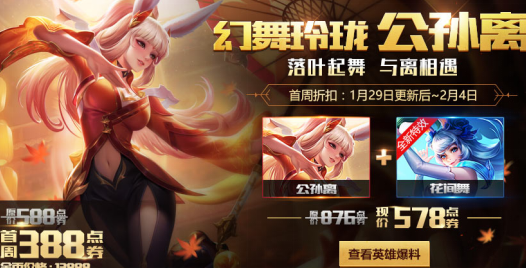 以上就是公孙离的首周折扣价是多少点券,王者荣耀1月30日每日一题,请大家继续关注。
