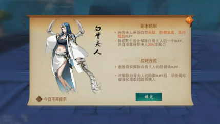 1 白骨夫人的7件衣服(7个防御类BUFF),击败7个小骨妖后解除对应BUFF。