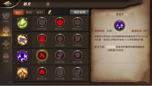 铭文除了抚慰之光和灵魂净化点第一个之外,其余技能全部点第二个