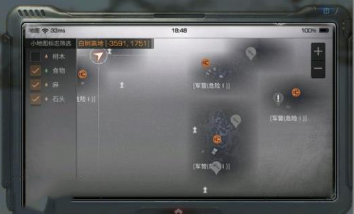交火区能遇到敌人,敌人会杀了你,死了会掉东西,但是掉的不是很多,去交火区玩很刺激和别人打架。在交火区收获的东西也都属于感染物品,得飞机运回去。飞机是在地图里面有三个点,绿色就是代表过去可以召唤飞机,召唤飞机大概需要一分钟呆在那个圈里不能出去,白色的飞机下面有时间,19:46代表19分钟46秒冷却后可以使用。